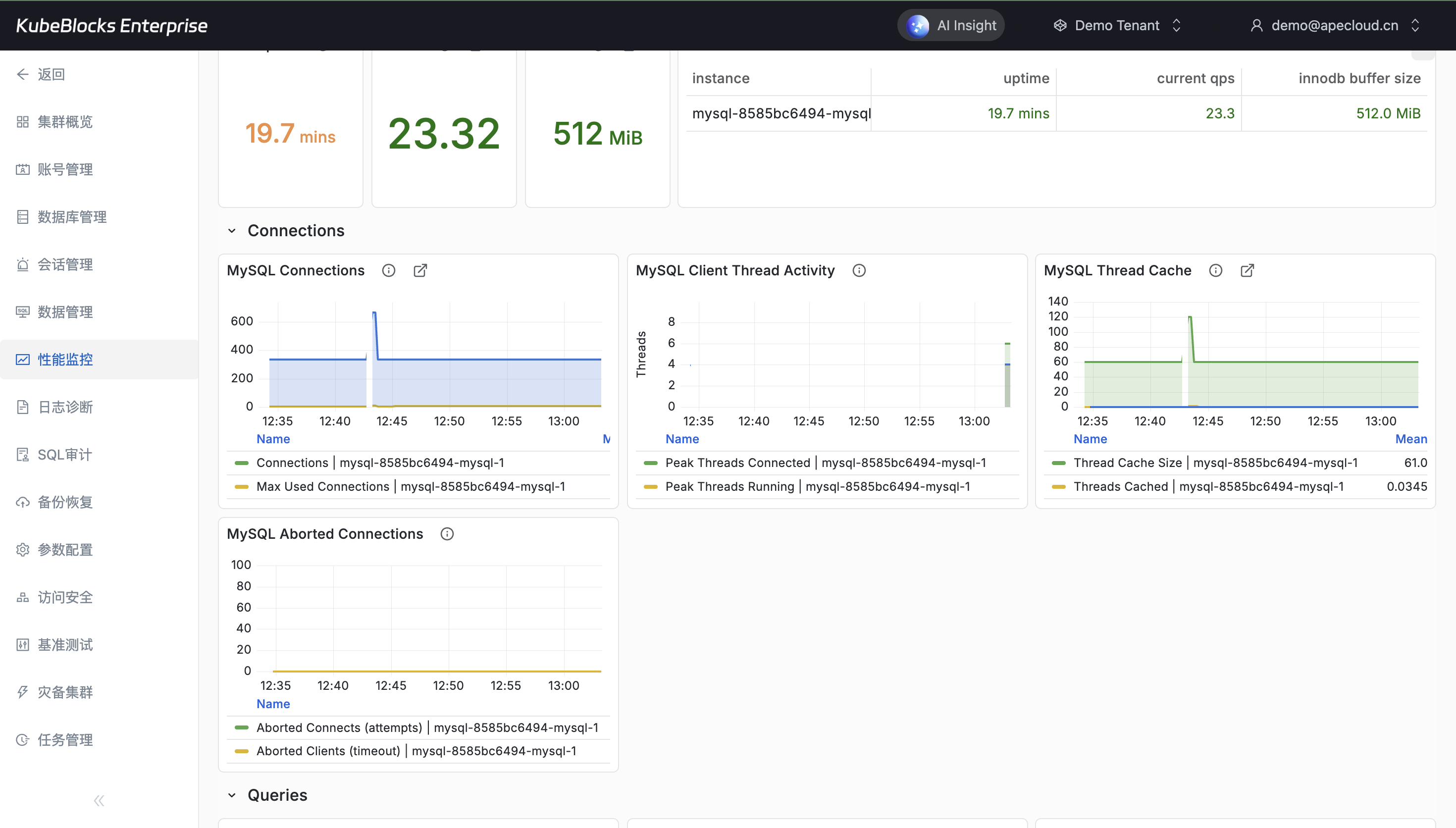 把性能监控、运行日志和慢查询分析收敛到同一个 MySQL 工作区,帮助团队在控制台中完成巡检和故障定位。