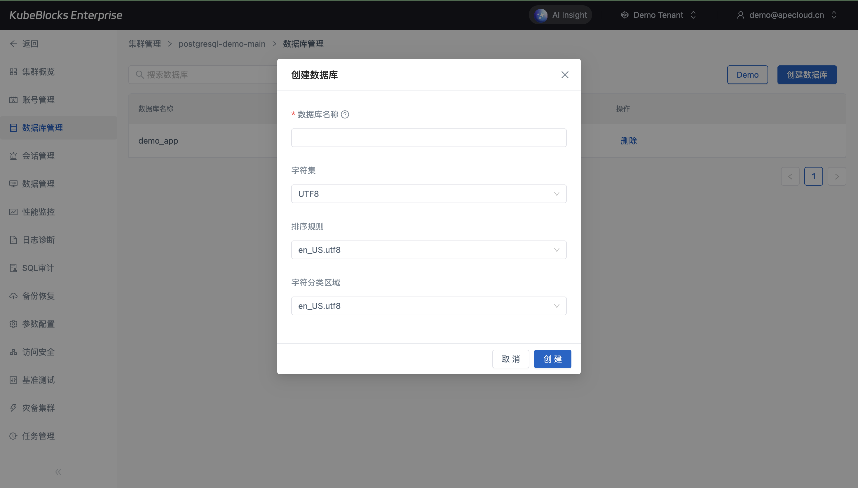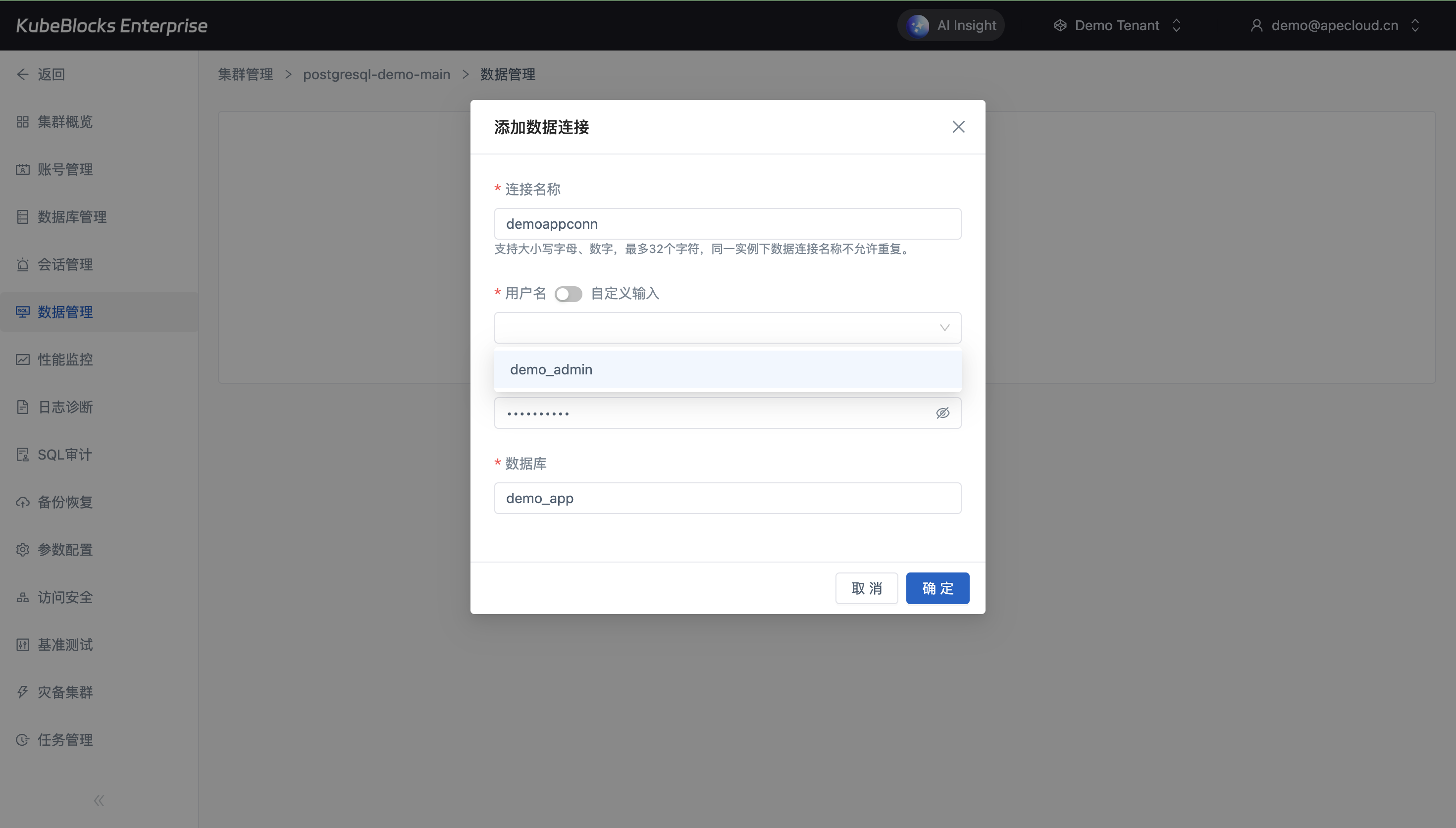 账号与数据库管理都保留在 PostgreSQL 集群上下文中,减少交付过程中的跨系统切换。