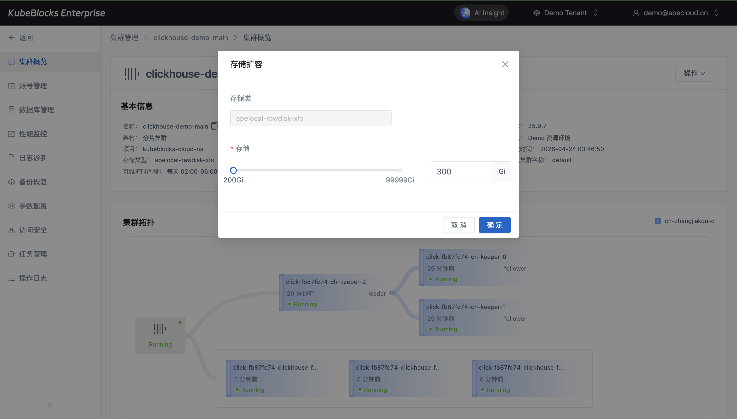 围绕算力和存储的两类资源变更已经在页面中独立呈现,便于围绕单节点负载和数据增长做容量调整。