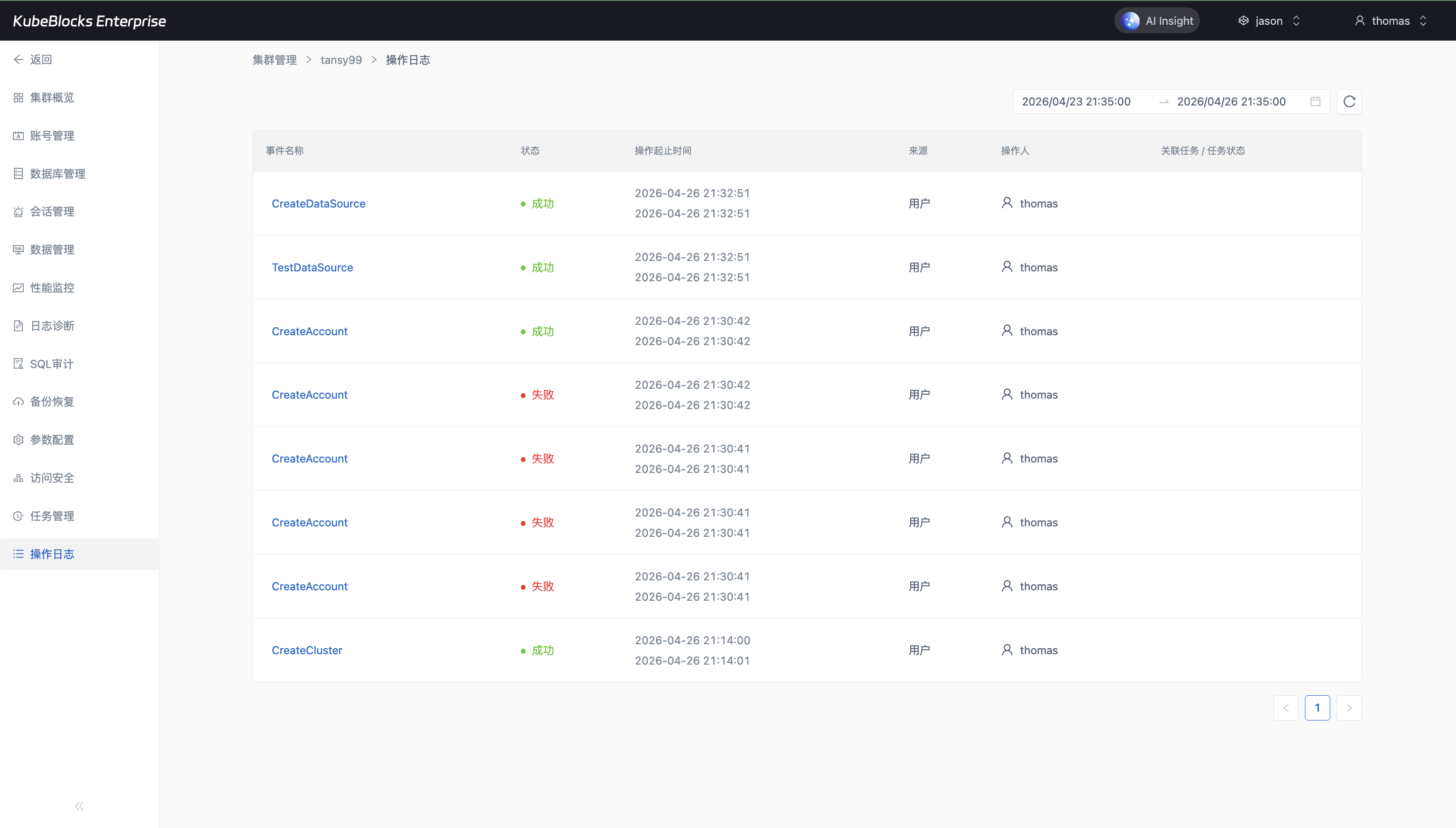 集群交付、账号准备和后续治理动作都可以在同一实例上下文中统一留证。