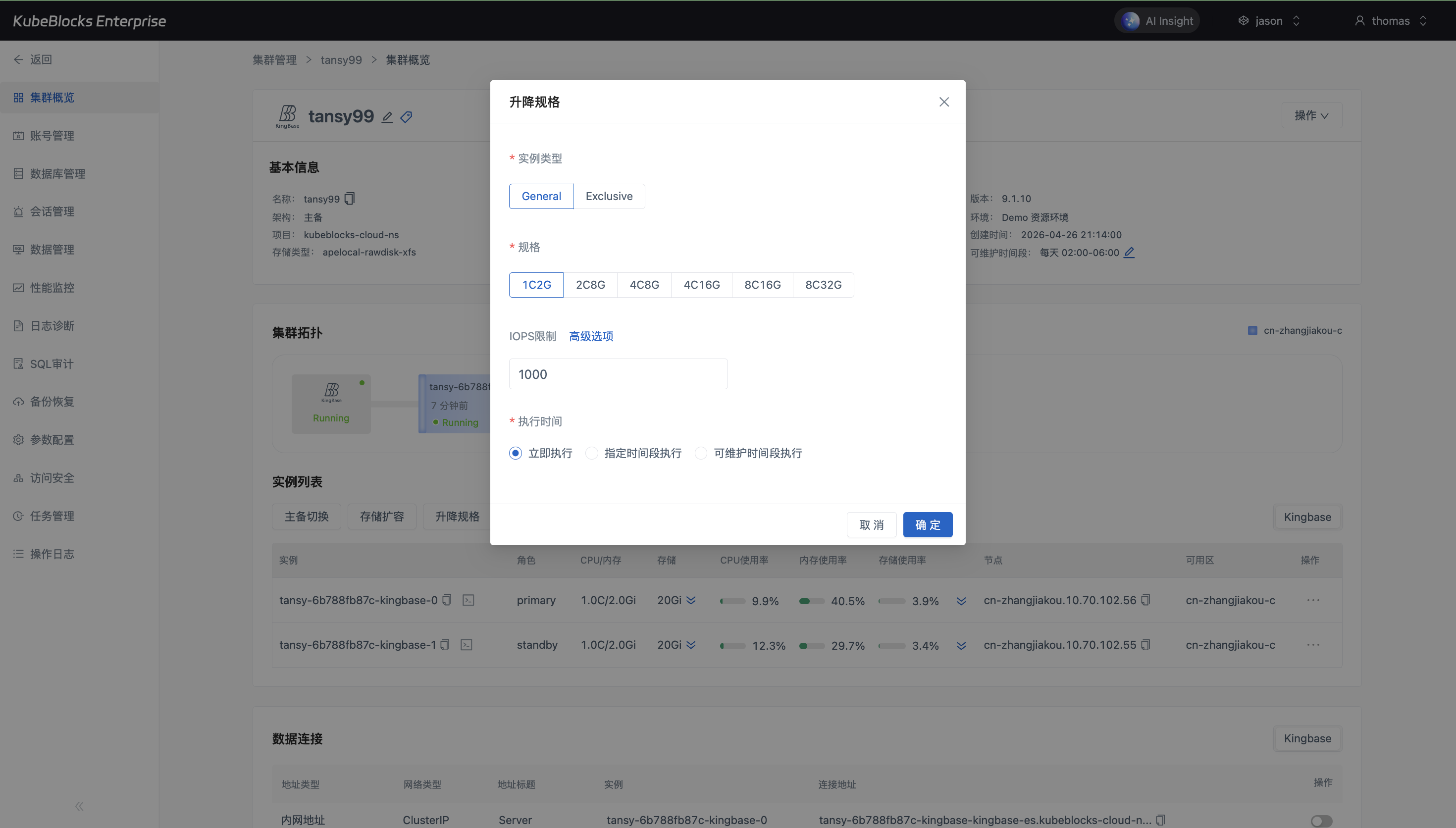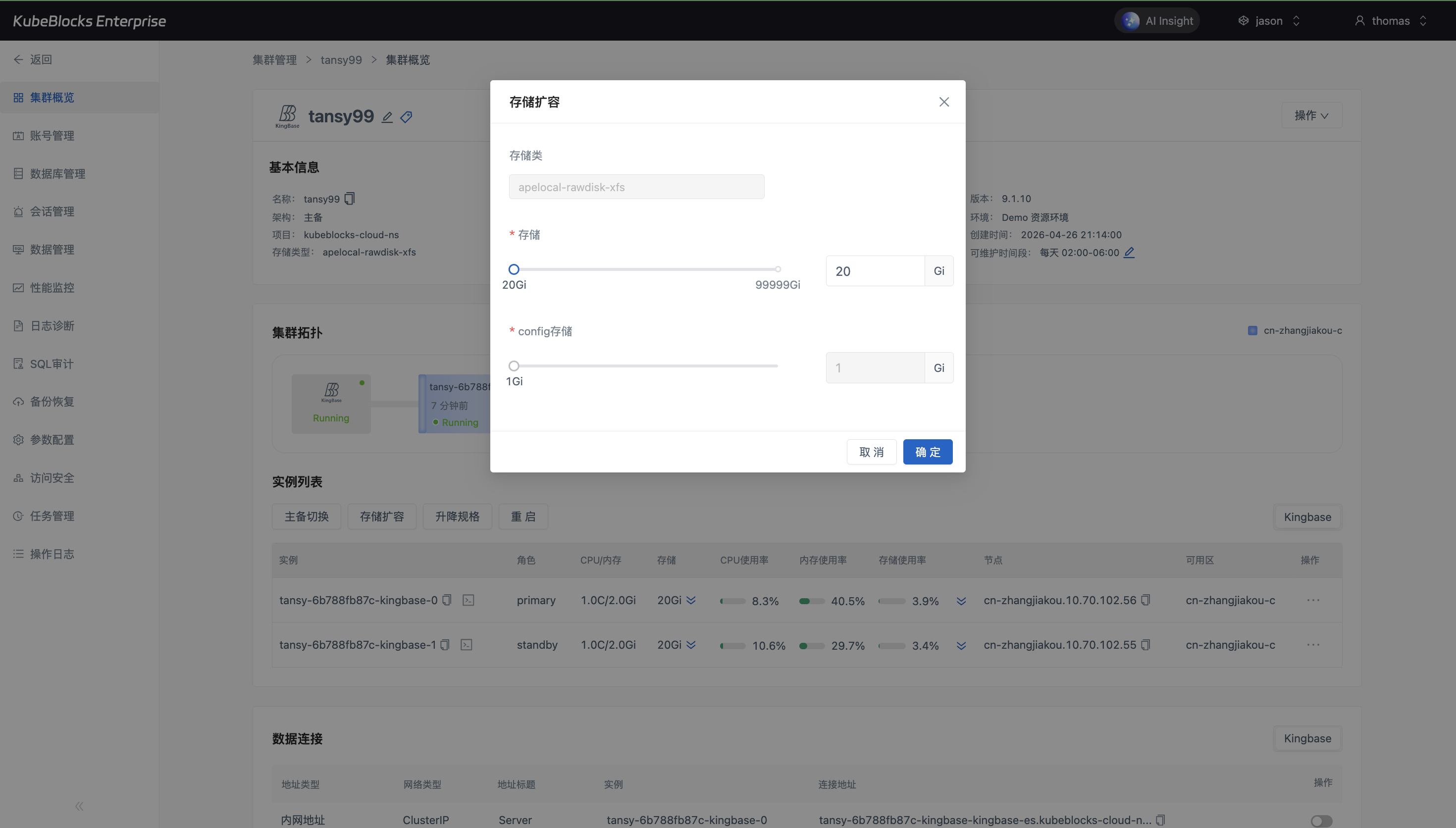 算力与存储变更都留在金仓工作区中处理,便于团队围绕同一实例统一审查变更。