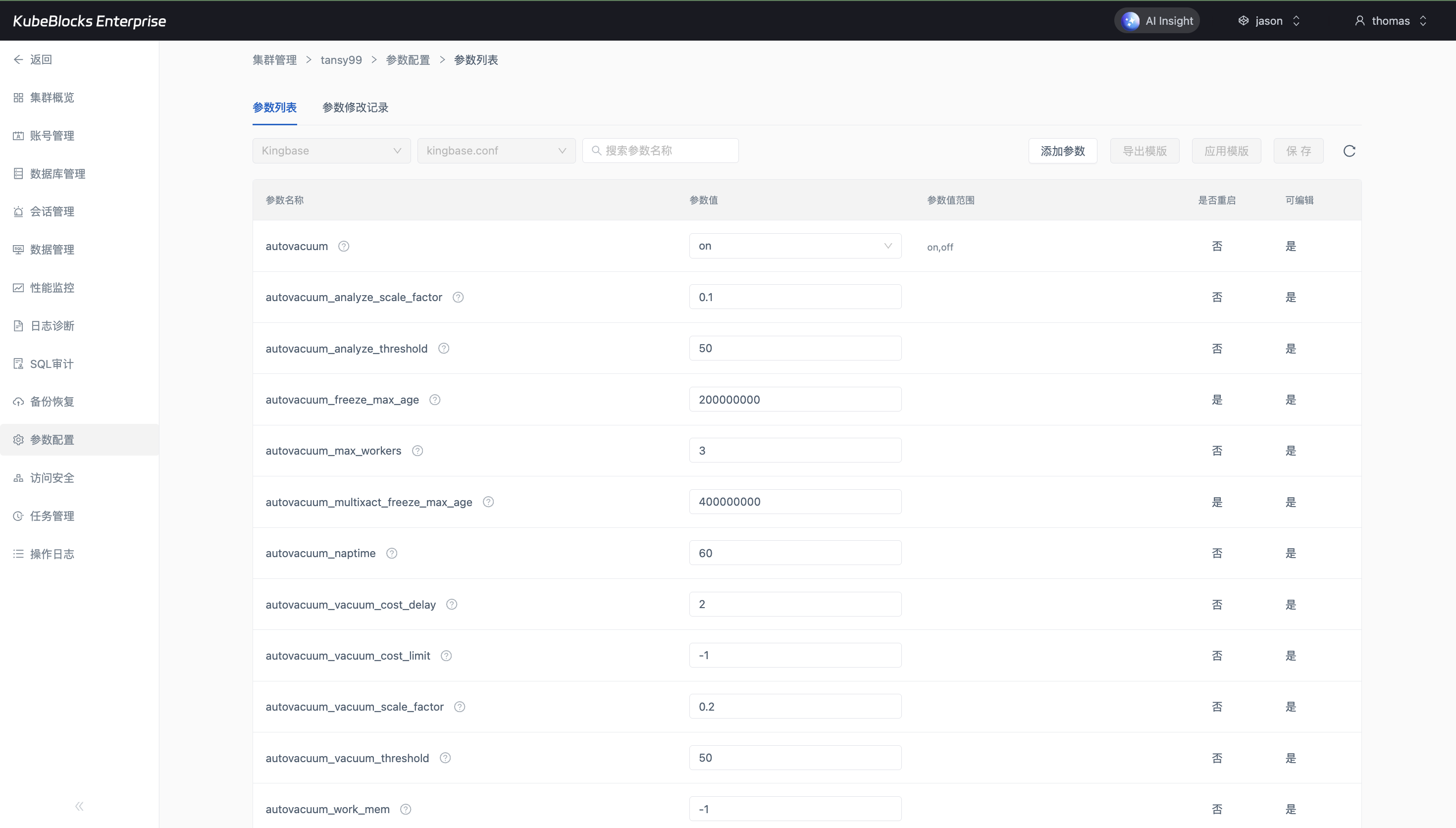 金仓原生参数在统一控制台中集中呈现,减少依赖额外脚本去确认配置基线。