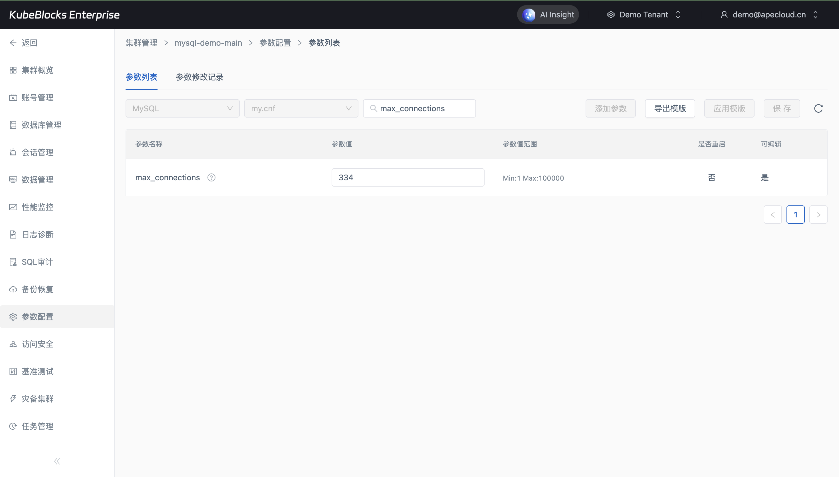 把参数调优从扩缩容和高可用操作中独立出来,在专门的参数配置页面中查看当前值并执行配置变更。