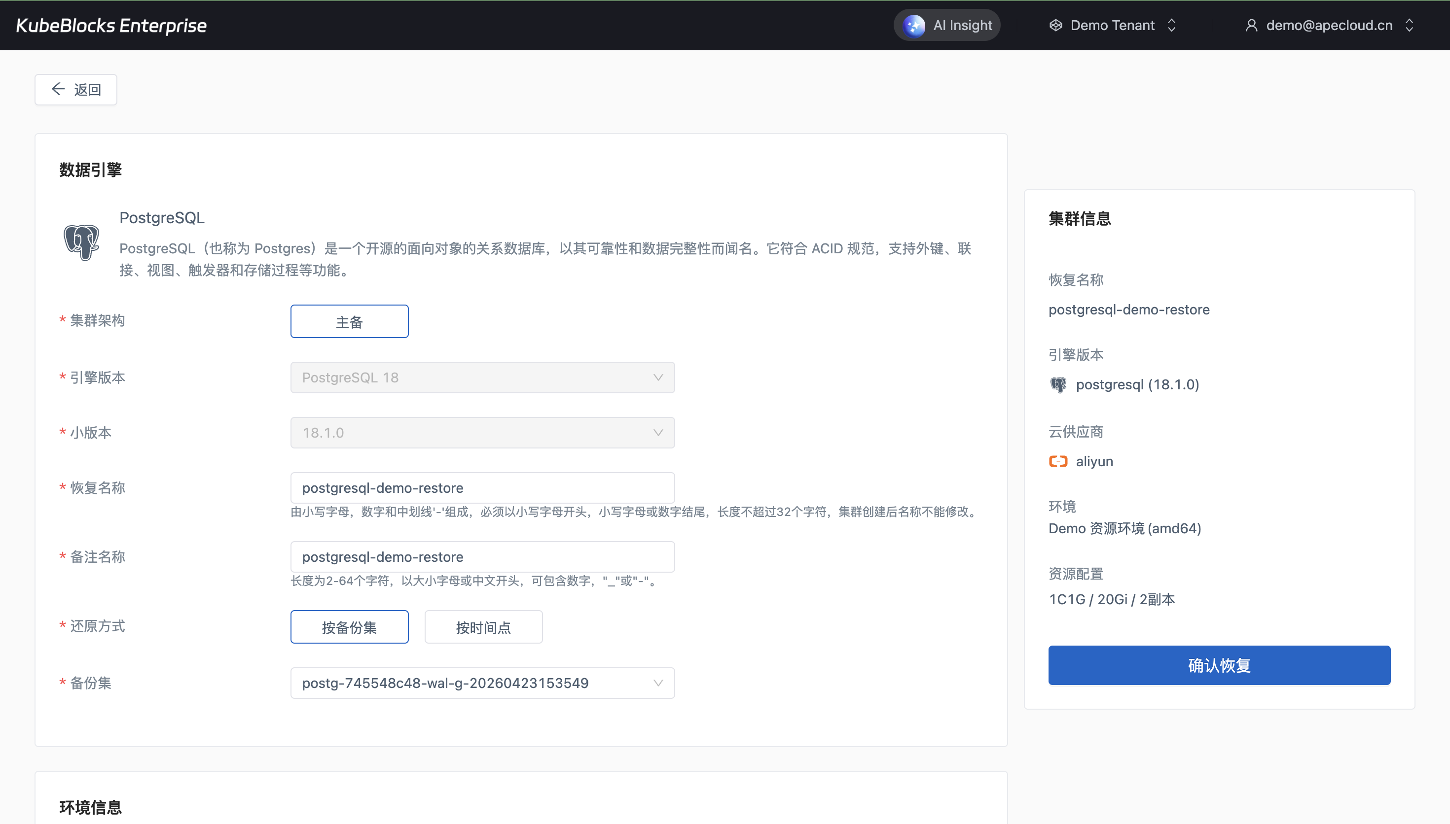 备份页和恢复流程基于真实集群与真实备份集展示,帮助平台团队把保护、验证和恢复闭环留在统一控制台里。